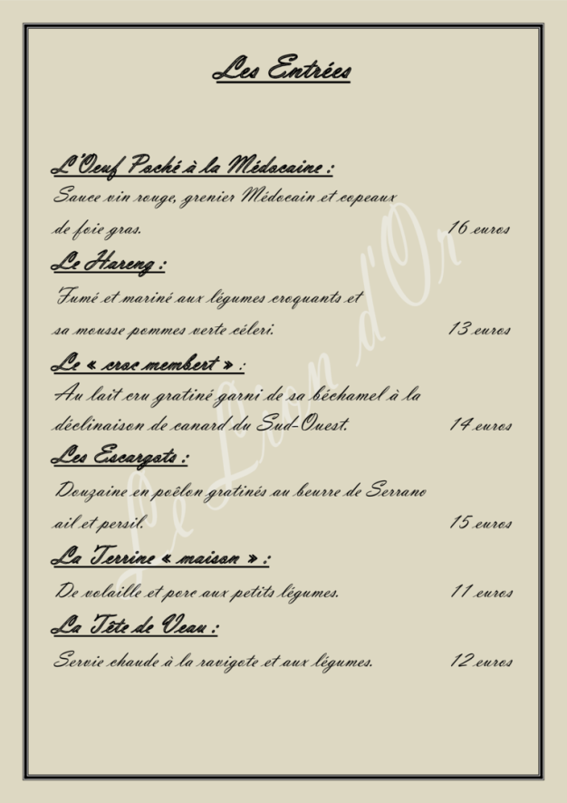 Restaurant "Le Lion d'Or" 11 Route de Pauillac